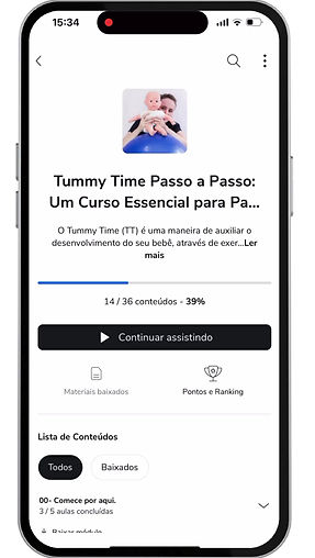 O objetivo do Tummy Time é alcançar uma hora de duração, porém isso será gradual. No curso, incentivo o início das atividades e, à medida que você avança nos estudos, aprenderá a adaptar e aprimorar a técnica. Também forneço suporte ao vivo, pois sei que o bebê não espera e continua crescendo.